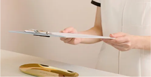 ご来院いただいたらまずは受付で問診票にご記入いただきます(事前にWEBでご回答いただくこともできます)。