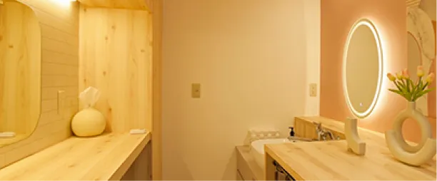 パウダールームも完全プライベートな空間ですので、他のお客様に会う心配はございません。